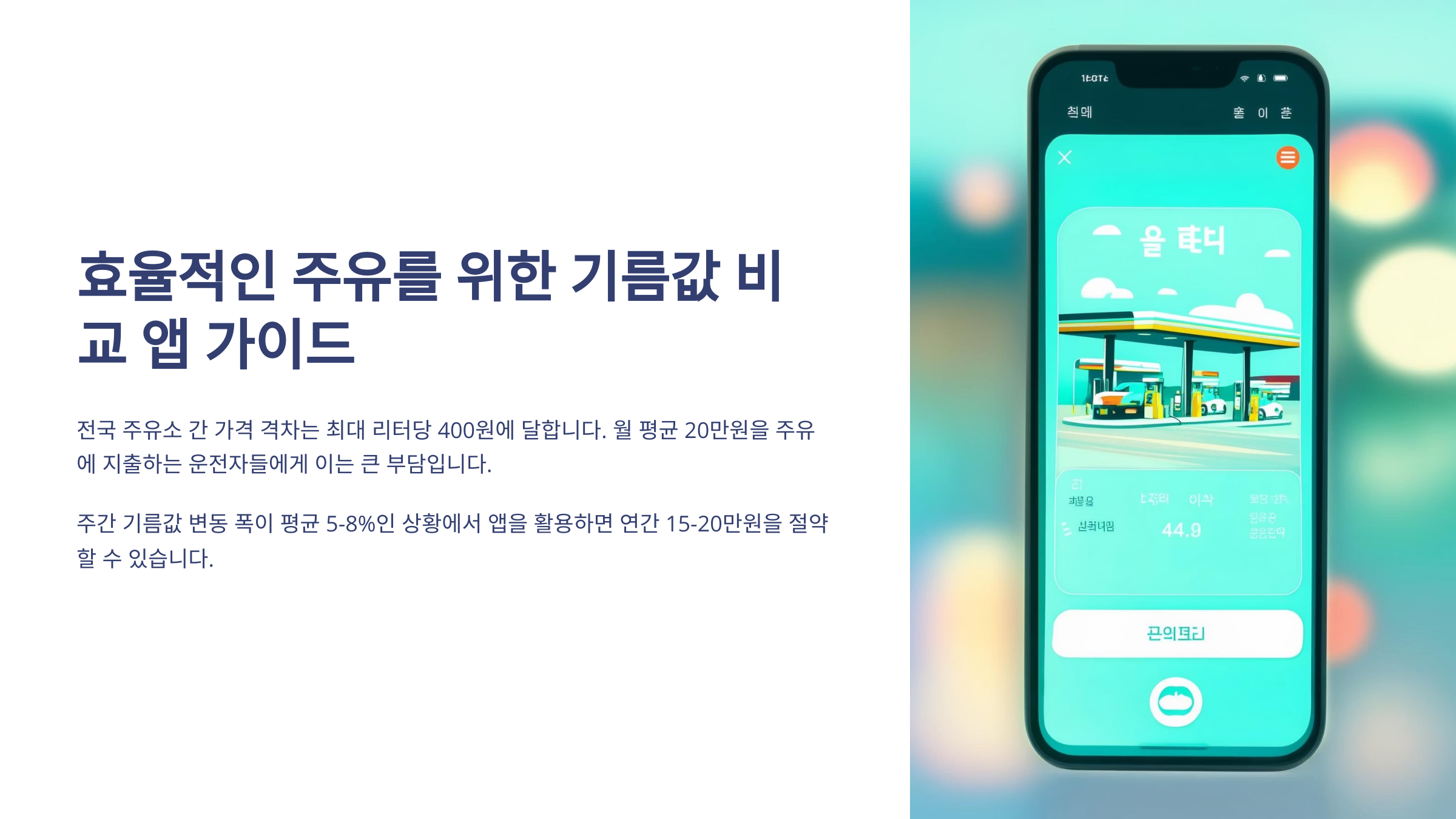 📋 목차기름값 비교 앱이 필요한 이유앱에서 제공하는 주요 기능추천 기름값 비교 앱 TOP 3실속 있게 활용하는 꿀팁사용자 후기 및 평점 분석연간 절감 효과 계산해보기 💰FAQ요즘처럼 기름값이 들쑥날쑥할 때, 주유소를 그냥 들어가면 손해 보는 느낌 들 때 많죠? ⛽ 특히 장거리 출퇴근이나 택배, 배달 운전하시는 분들에게는 단 몇 원 차이도 무시 못 할 만큼 중요한 요소예요. 이럴 때 필요한 게 바로 ‘기름값 비교 앱’이에요! 내가 생각했을 때 이 앱은 단순한 가격 정보만 보여주는 게 아니라, 실시간 위치 기반 최저가 검색, 유종별 가격 차이, 카드 할인 정보까지 알려줘서 정말 실용적이에요. 제대로만 활용하면 월 수천 원, 연간 수십만 원까지 절약할 수 있어요! 💸기름값 비교 앱이 필요한 이유 ⛽202..