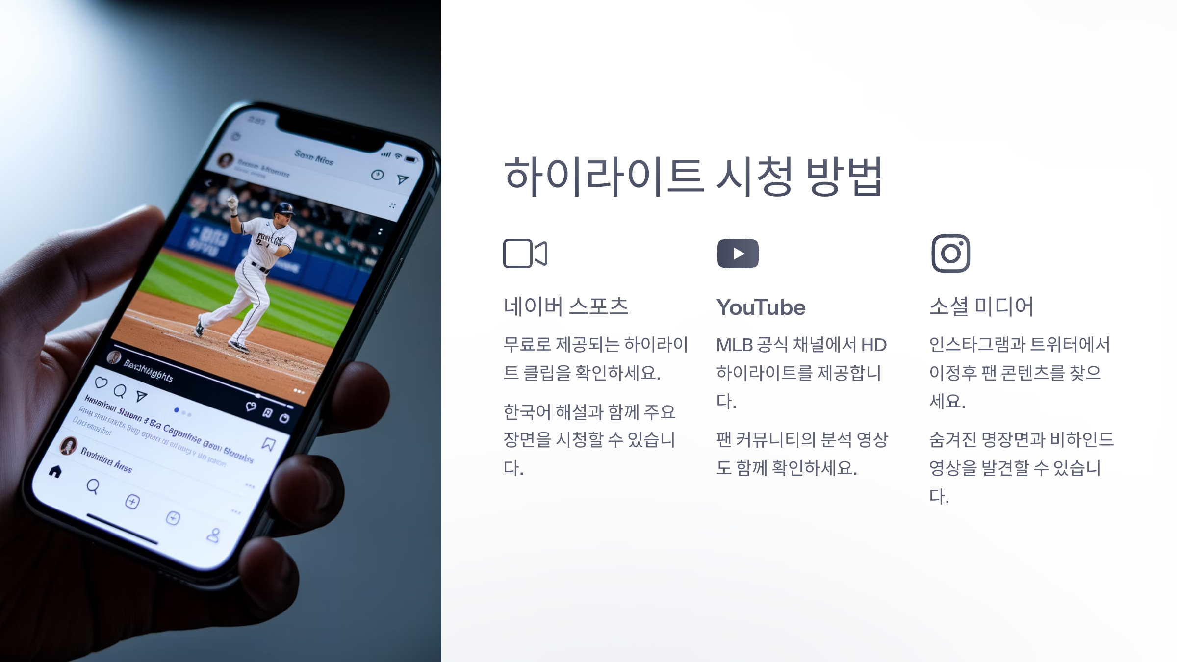 다음은 하이라이트 시청 방법 섹션이에요! 이정후의 멋진 순간만 골라 보고 싶은 분들을 위한 팁, 바로 알려드릴게요 ⚡