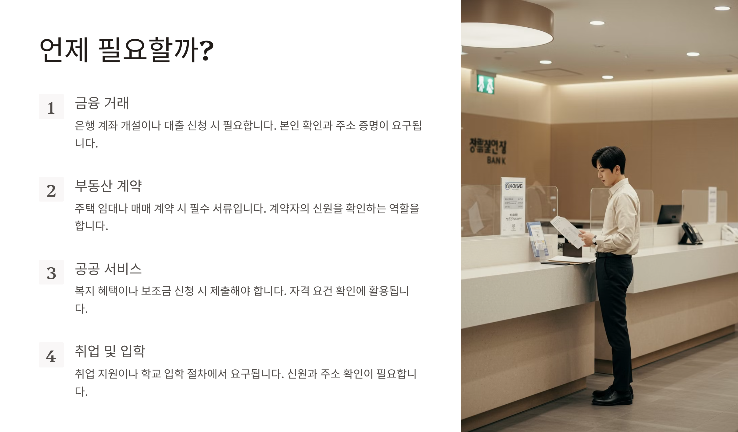 주민등록등본은 다음과 같은 상황에서 자주 필요해요. 😊
