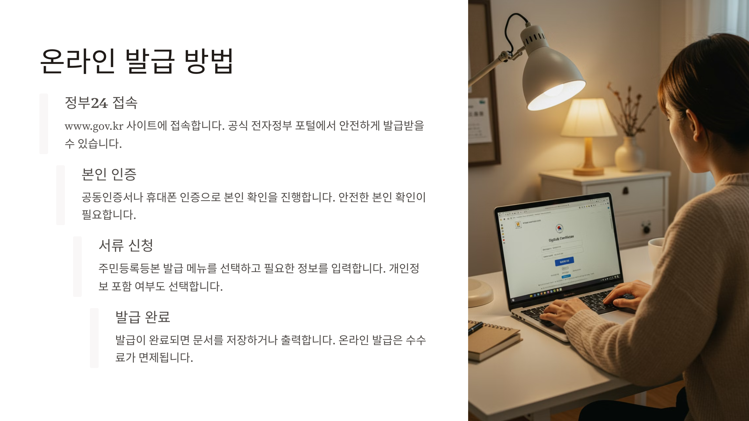 가장 편리한 방법은 정부24를 이용하는 거예요! 🌐