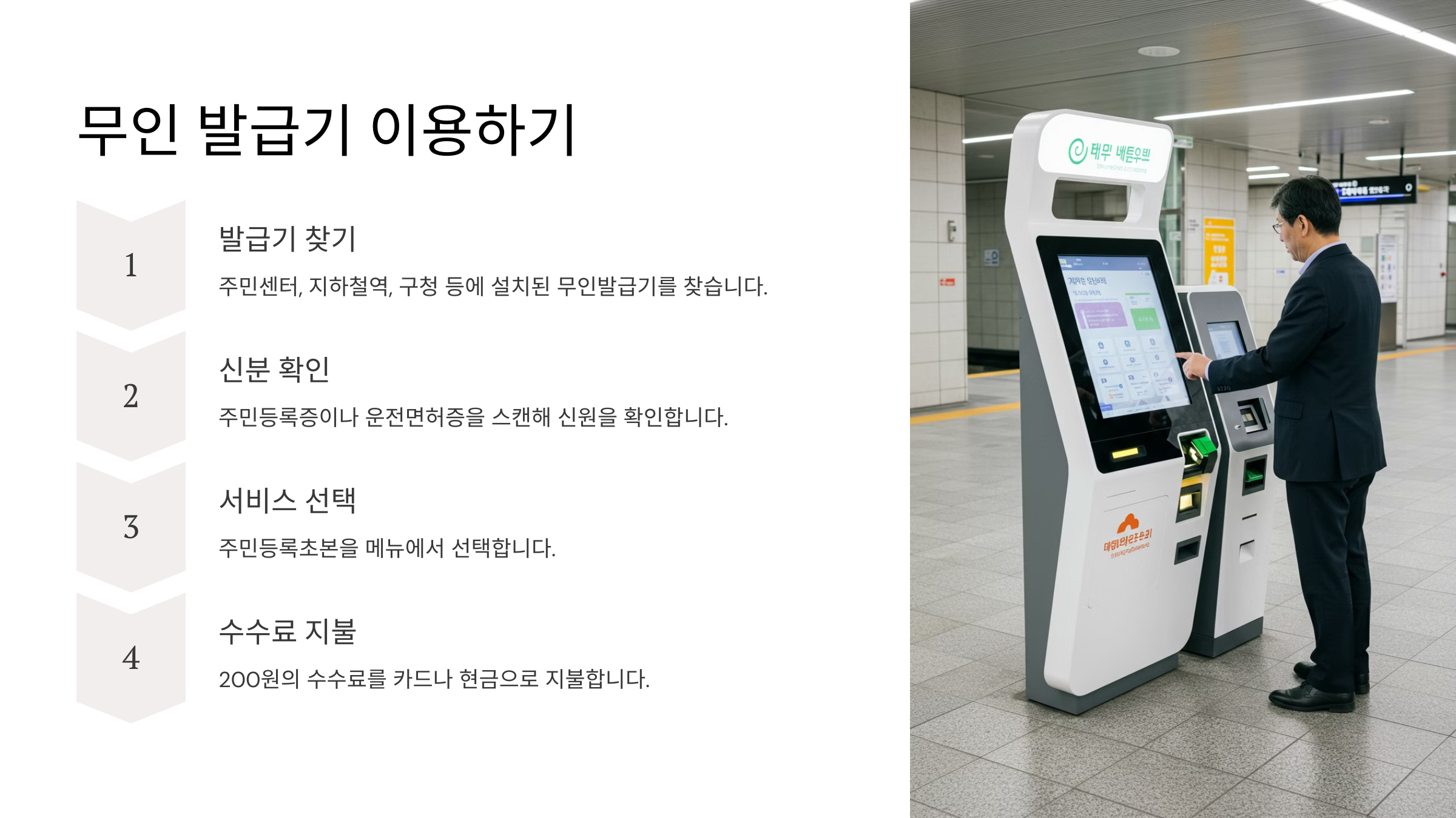 전국 곳곳에 설치된 무인 민원 발급기를 이용하면 더 빠르게 받을 수 있어요! 😊