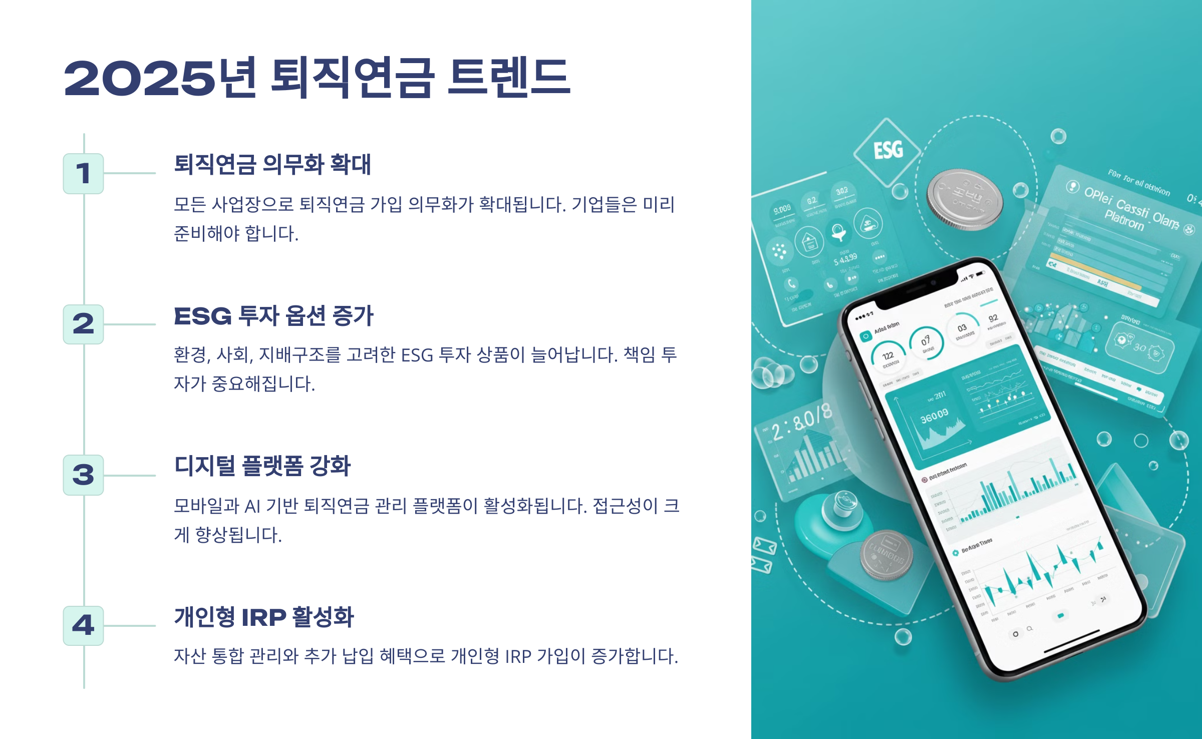 그리고 2025년에는 모바일 기반 자산관리 앱이 퇴직연금과 연동되면서, 본인이 직접 운용 상황을 실시간으로 확인하고 조정할 수 있게 됐어요. 이제 퇴직연금도 '내 손안의 자산'이 되는 시대죠. 📱