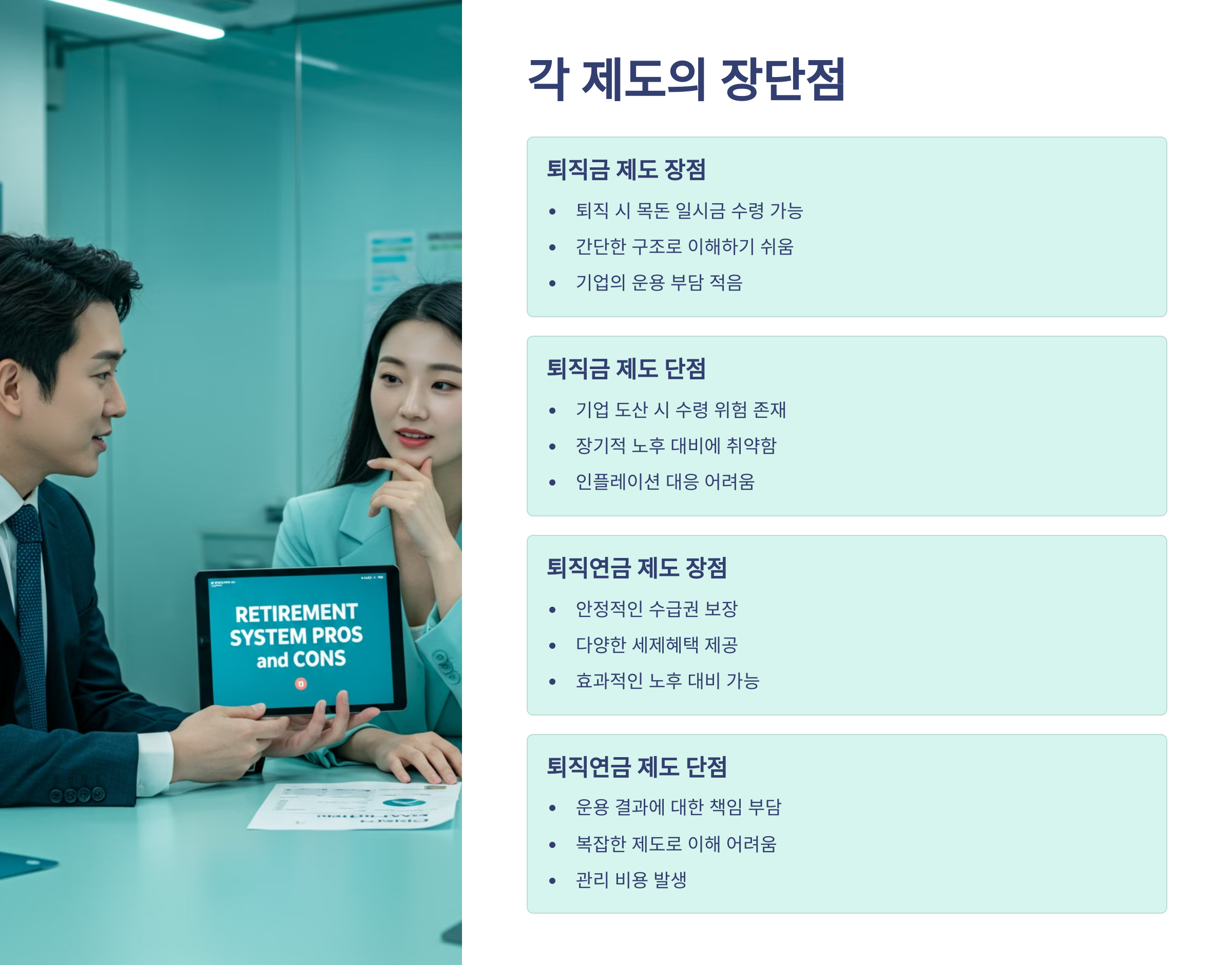 각 제도의 장단점 비교 ⚖️