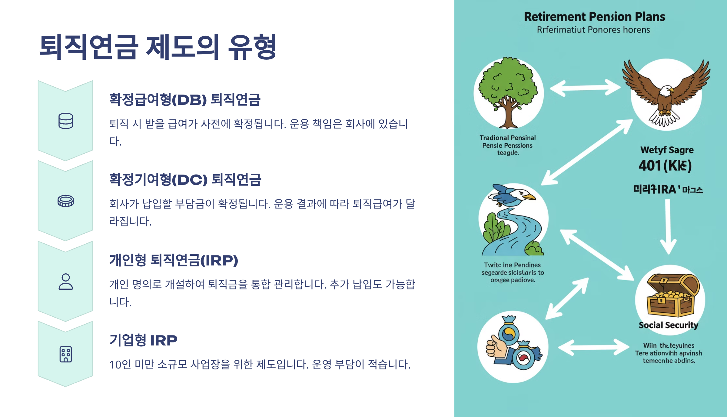 | 노후 생활 안정 우선 | DB형 퇴직연금 | 고정 금액 수령 가능 |