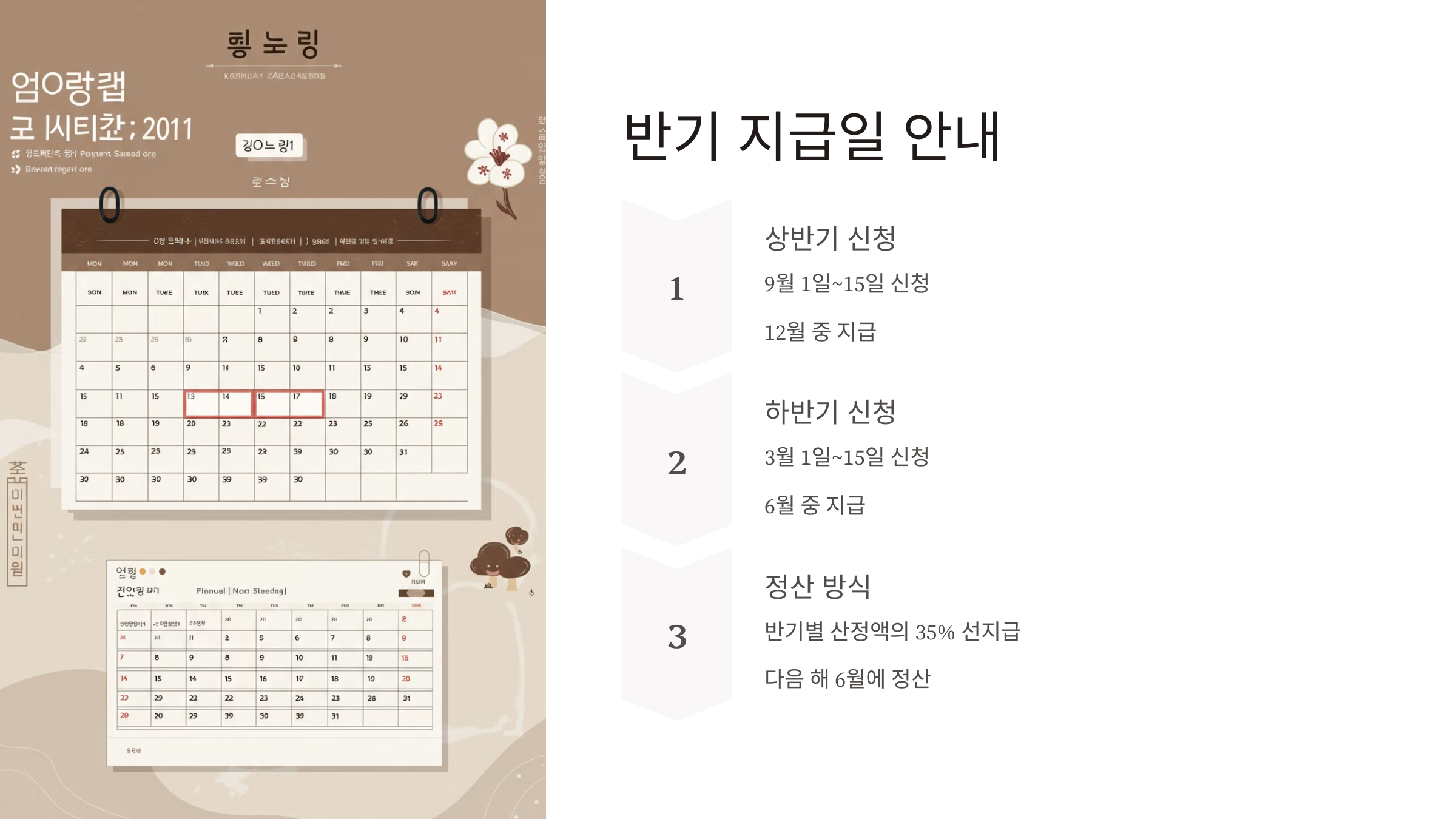 다만 반기 신청은 **지급 금액이 '잠정 계산'**이라서, 이듬해 정산 시 환급 또는 환수될 수도 있어요. 실제 소득과 다를 경우 차액 조정이 들어간다는 점을 꼭 기억해야 해요!
