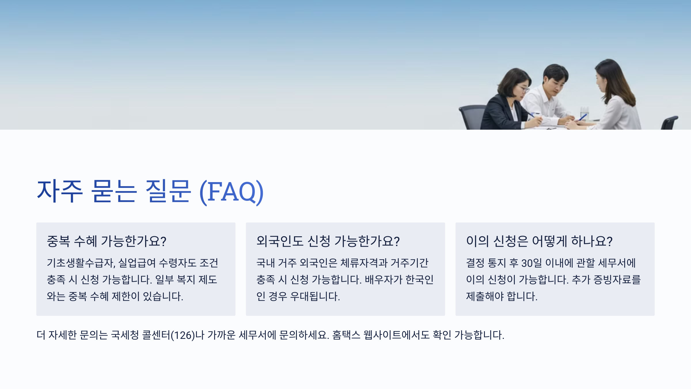 제도 자체가 워낙 유용하다 보니 정부도 적극적으로 홍보에 나서고 있어요. 마을 게시판, 문자, 국세청 홈택스 등을 통해 신청 시기를 잊지 않도록 안내하고 있죠. 덕분에 매년 신청률도 점점 높아지고 있어요.