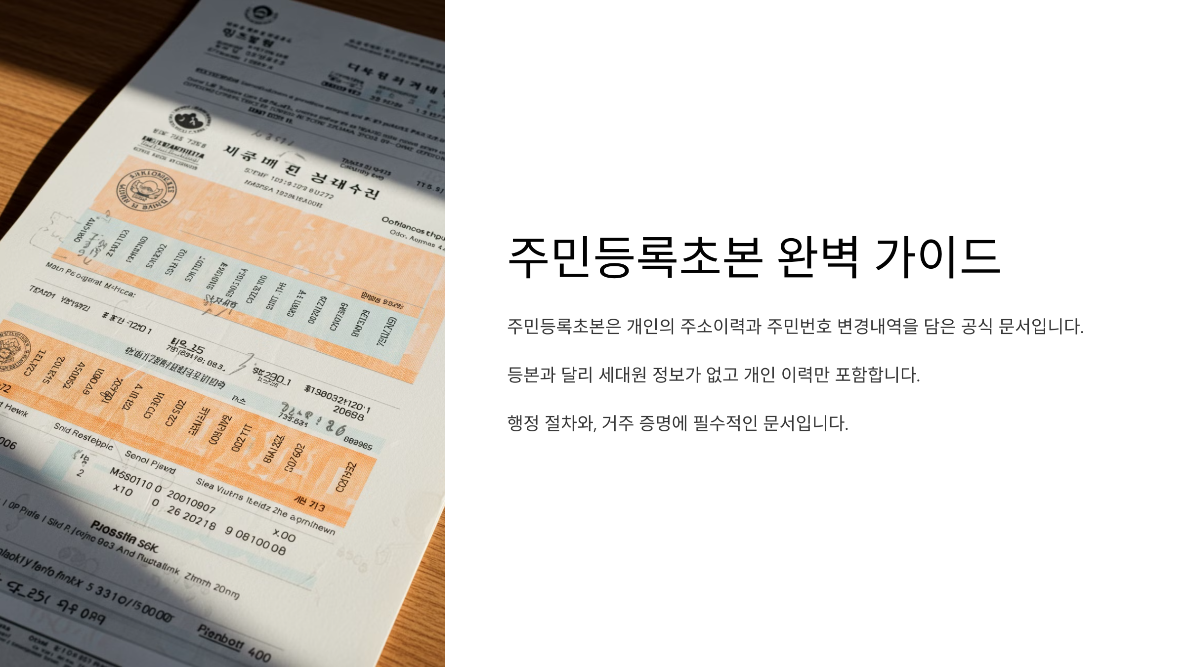 온라인, 오프라인, 무인 발급기까지 총정리!안녕하세요, 여러분! 😊은행 업무, 취업, 병역 확인 등 다양한 곳에서 필요한 주민등록초본!주민등록초본은 본인의 주민등록 변동 사항을 증명하는 서류로, 온라인과 오프라인에서 쉽게 발급받을 수 있어요. 💻오늘은 온라인, 주민센터, 무인발급기를 이용해 간편하게 발급받는 방법을 알려드릴게요. 😊📌 목차주민등록초본이란? 📄주민등록초본이 필요한 경우 🏦온라인 발급 방법 💻오프라인 발급 방법 🏢무인 발급기 이용하기 🖥️자주 묻는 질문 (FAQ) 💡주민등록초본이란? 📄주민등록초본은 주민등록등본과 달리 본인의 정보만 포함된 문서예요.주소 변동 내역, 병역사항 등의 정보가 포함되며, 본인이 직접 신청해야 해요.✅ 주민등록초본 vs 주민등록등본구분주민등록초본주..